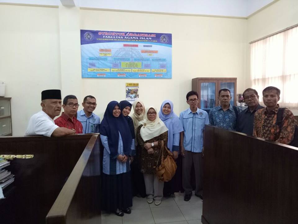 Rektor Universitas Muhammadiyah Sumatera Barat Dra. Novelti, M.Hum berkunjung Ke FAI UMSU, yang di dampingi oleh Badan Pembina Harian (BPH) dan Pimpinan Wilayah Muhammadiyah Sumatera Barat (PWM Sumbar). Kunjungan tersebut pada hari Senin, 7 Agustus 2017 Fakultas Agama Islam Universitas Muhammadiyah Sumatera Utara mendapat kunjungan dari . Pada kunjungan tersebut banyak hal yang di sampaikan oleh Rektor UMSB, diantaranya tentang kemajuan yang telah di capai oleh Universitas Muhammadiyah Sumatera Utara, khususnya Fakultas Agama Islam, yang telah mencapai Nilai Akreditasi A pada dua Progran Studi, yaitu Program Studi Pendidikan Agama Islam (PAI) dan Program Studi Bisnis Manajeman Syariah (BMS).