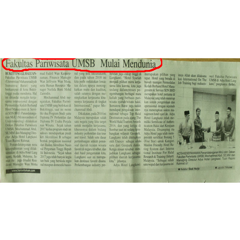 Mendunia, Fakultas Pariwisata UMSB menjalin kerja sama Internasional