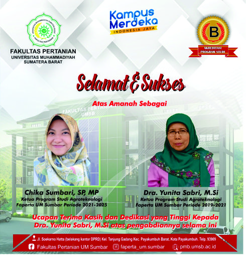 Kamis, 15 April 2021, bertempat di Ruang Seminar Fakultas Pertanian, telah dilaksanakan acara serah terima jabatan Ketua Program Studi Agroteknologi, Fakultas Pertanian, UM Sumatera Barat.