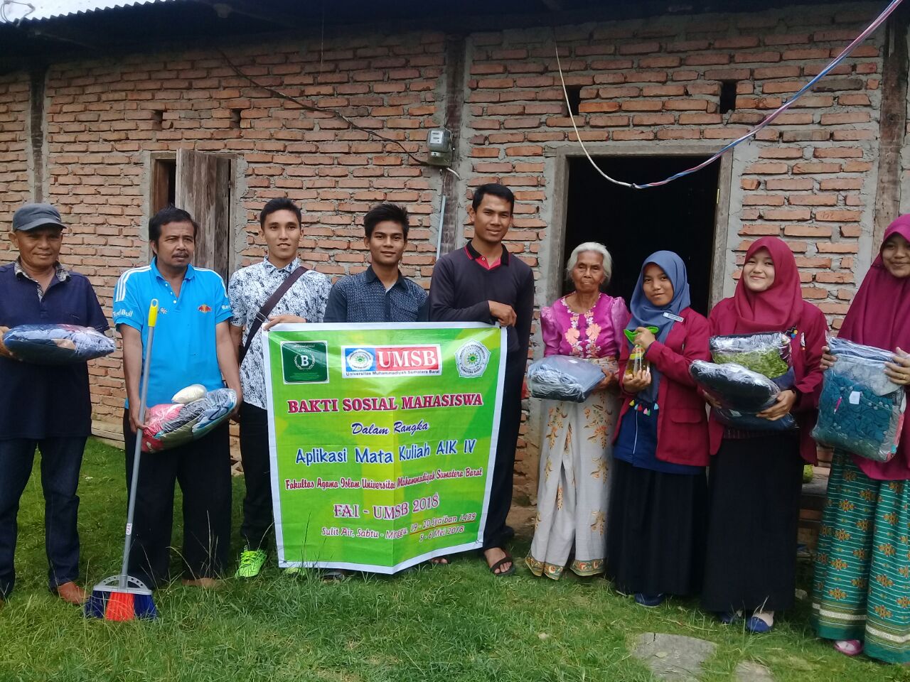Fakultas Agama Islam Universitas Muhammadiyah Sumatera Barat (FAI UMSB) menggelar BAKSOS AIK (Bakti Sosial Al-Islam dan Kemuhammadiyahan) menyelenggarakan Baksos sebagai bentuk praktek dan peduli masyarakat.