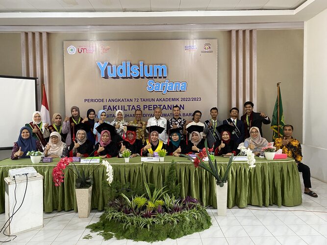 10/5/2023_Fakultas Pertanian melakukan Yudisium Wisudawan/ti Sarjana Angkatan ke 72 Periode 1, Kegiatan ini dilakasanakan di Aula Fakultas Pertanian UM Sumatera Barat. Fakultas Pertanian Universitas Muhammadiyah Sumatera Barat melaksanakan Yudisium sebanyak 8 orang, yang terdiri dari 5 orang dari prodi Agroteknologi dan 3 orang dari prodi Agribisnis. Yudisium Fakultas Pertanian dibuka langsung oleh Dekan Fakultas Pertanian UM SUMBAR (Risqha S. Burano, M.Si) yang didampingi oleh Ketua Prodi Agroteknologi (Chika Sumbari,SP,MP), Ketua prodi Agribisnis (Husnarti, SP, M.Si) serta Senat Fakultas Pertanian UM SUMBAR.